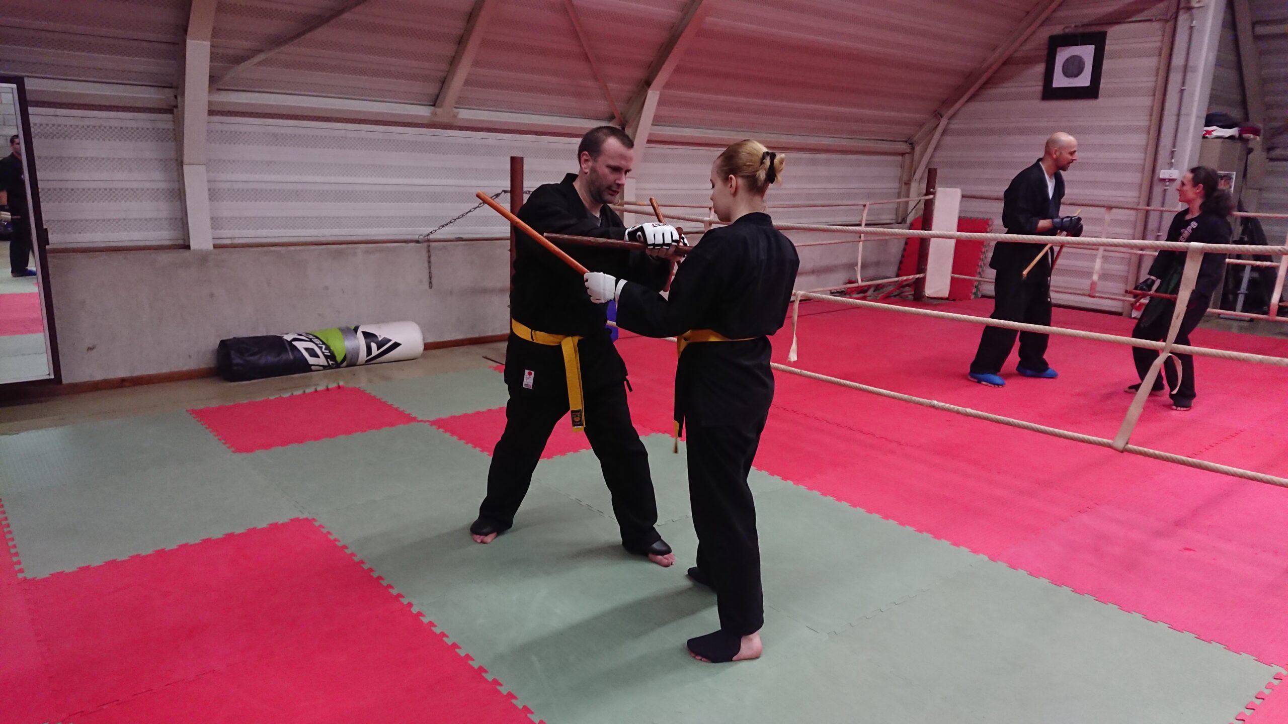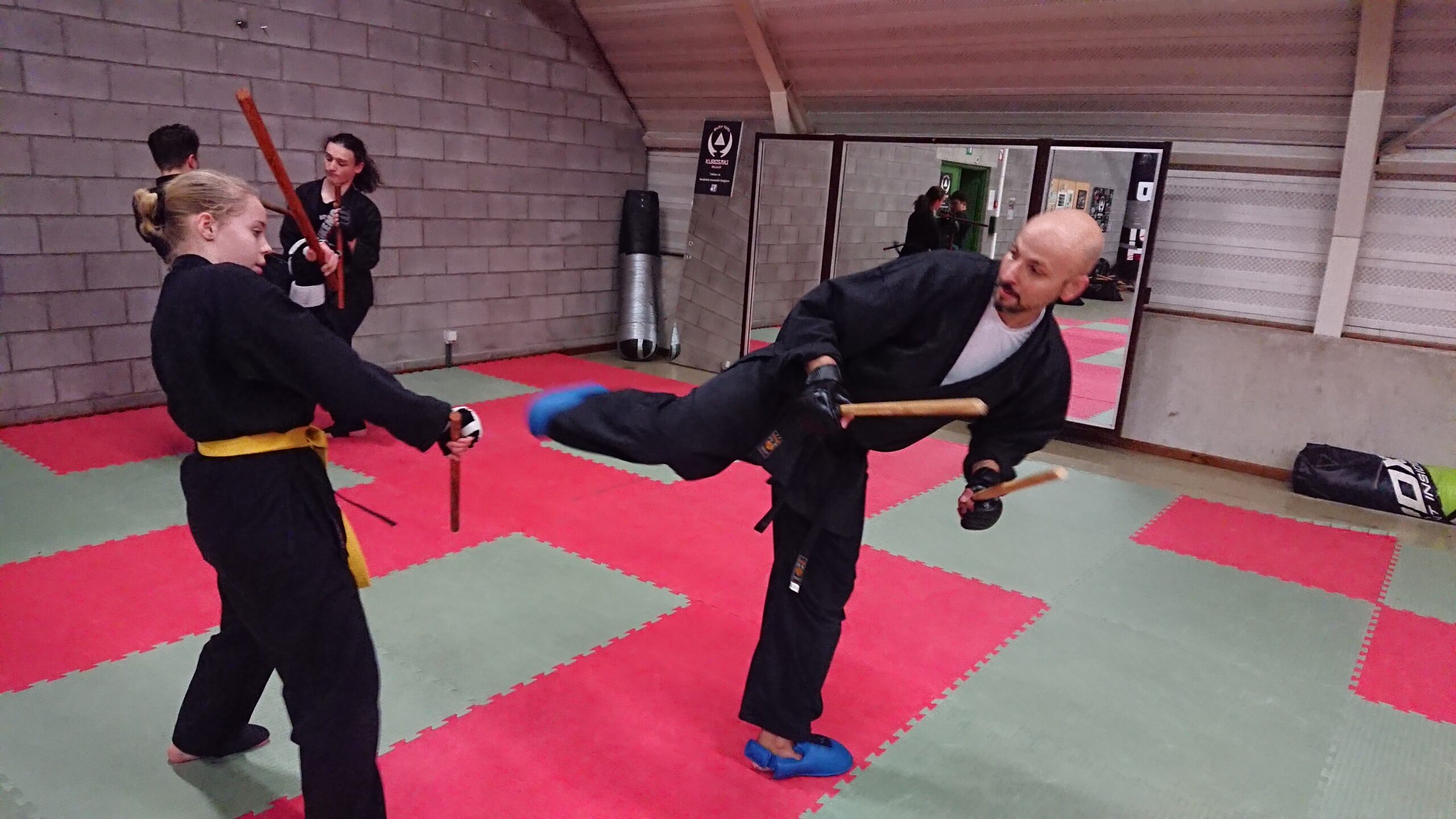 Manipulation d’une arme au choix (parmi : saï, nunchaku, tonfa, kama, boken, bâtons courts).